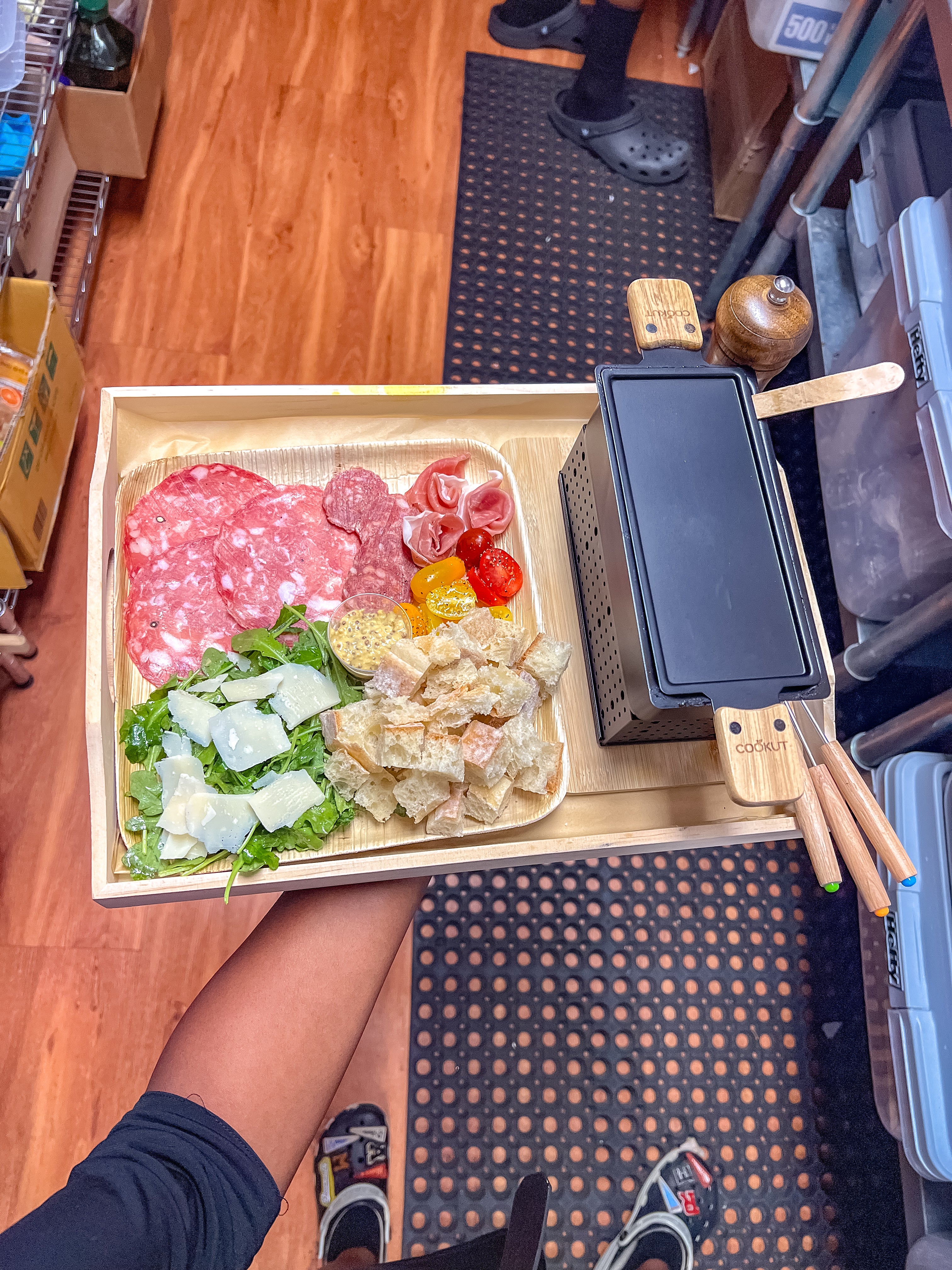 We invite you to embark on a journey of savory bliss that will tantalize your taste buds and warm your heart. Dive into a cauldron of creamy, molten fondue, perfect for dipping artisanal bread. Or skip the fondue and gather around the raclette!
